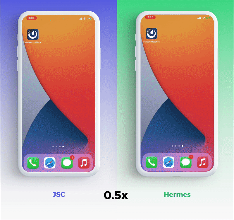 We measured three different metrics important to app developers: TTI, binary size, and memory consumption. We used the React Native app Mattermost for testing. We ran these experiments for both Android and iOS on high end hardware from 2020.